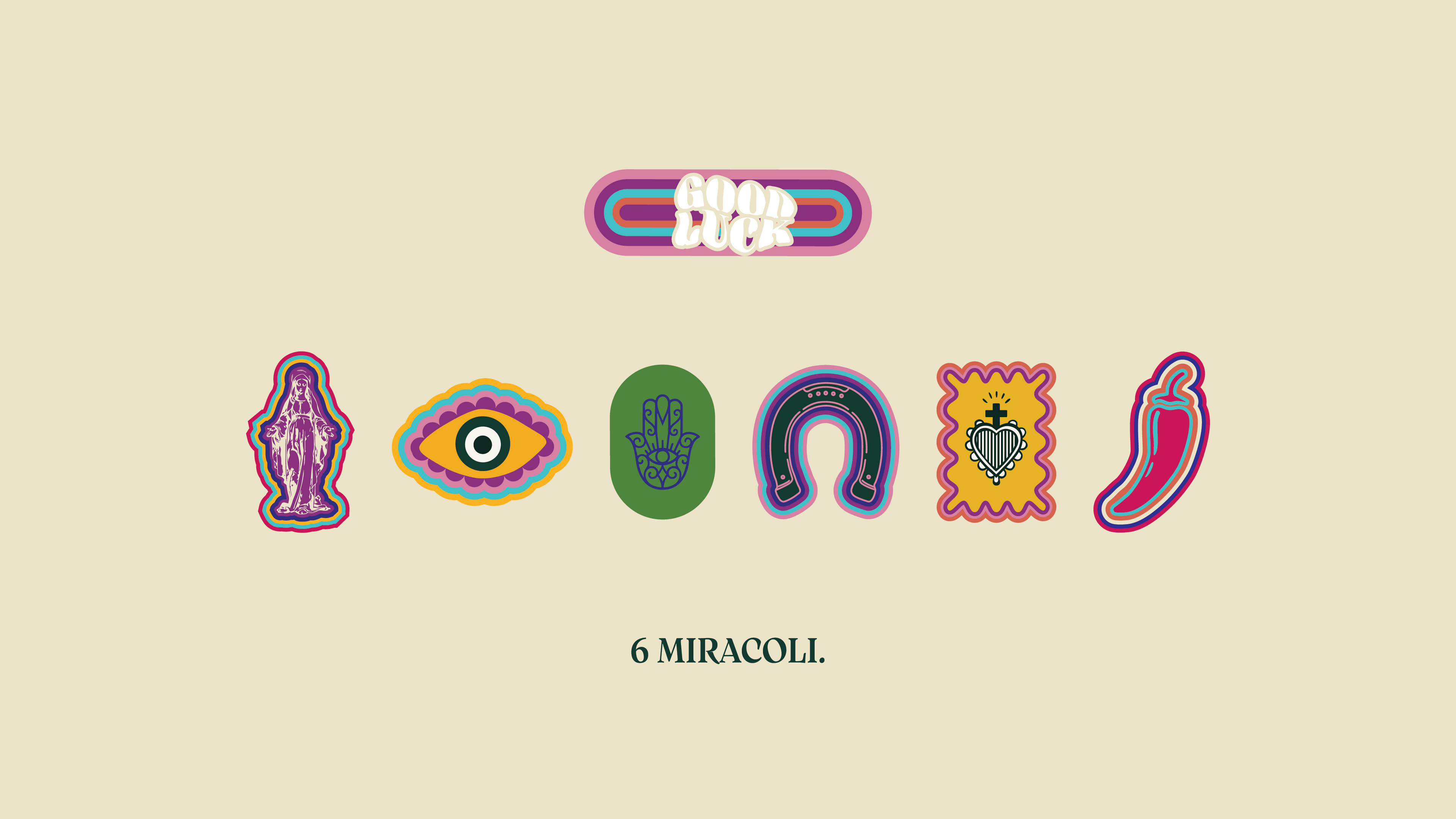 MADONNA, LUCKY EYE, HAMSA HAND, HORSE PETAL, SACRED HEART, CORNICELLO.